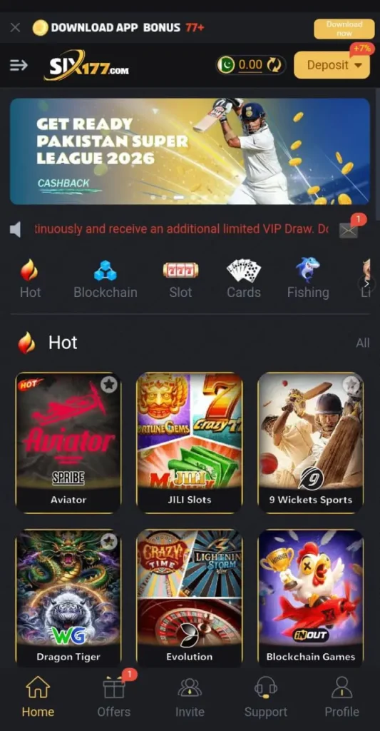 Six177 Game typically supports local Pakistani payment methods such as JazzCash, EasyPaisa, and bank transfers.